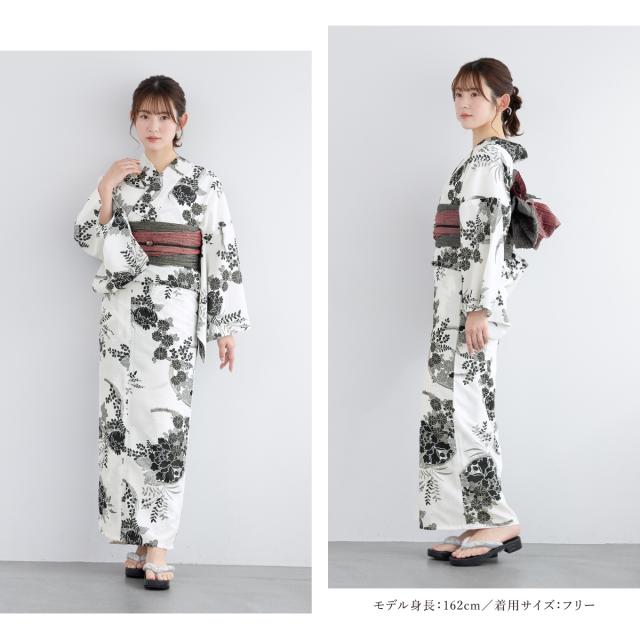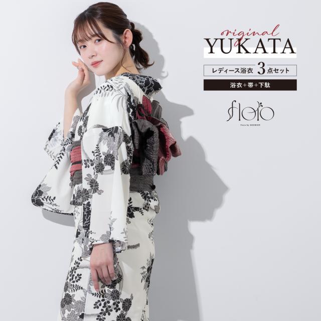 浴衣 セット レディース 浴衣セット 兵児帯 2025 floro 簡単 涼しい 白 黒 赤 花柄 おしゃれ 可愛い 下駄 S フリー 送料無料