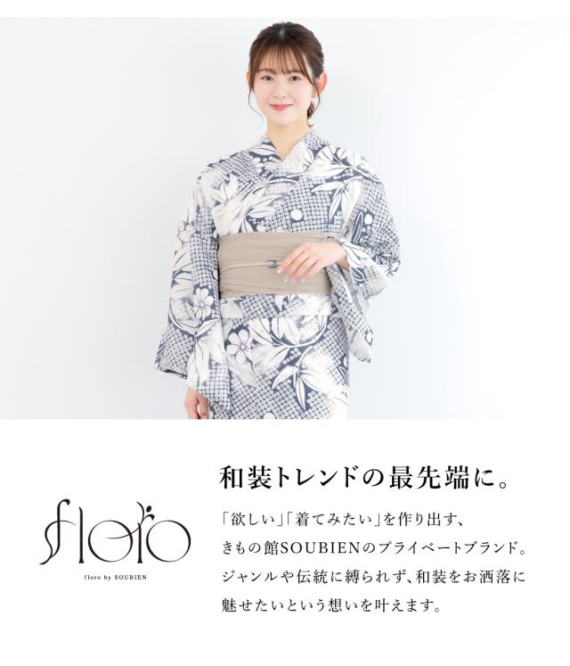 きもの館SOUBIENのプライベートブランド『floro by SOUBIEN』(フローロ)の華やかな女性用浴衣です。