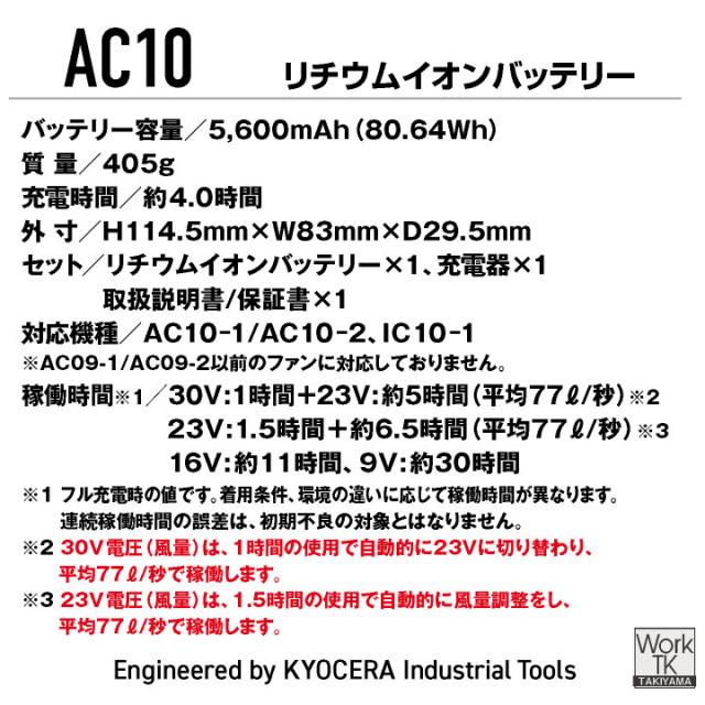 AC10リチウムイオンバッテリー(マットブラック)×1