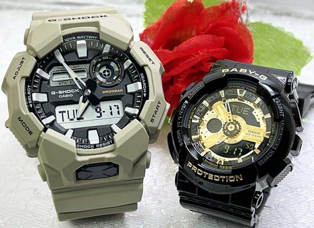 恋人たちのGショック ペアウオッチ G-SHOCK BABY-G ペア腕時計 カシオ 2本セット GA-010-5AJF BA-110X-1AJF ブラック×ゴールド 人気 ラッピング無料 人気 婚約 夫婦 高級 クリスマス プレゼント おすすめ誕生日 御祝い還暦 銀婚式 結婚記念日 バレンタイン 婚約