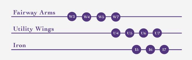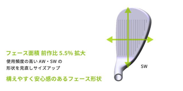 ■ウェッジ番手別設計。使用頻度の高いAW・SWのサイズを大きくしました。(SW5.5%面積アップ)