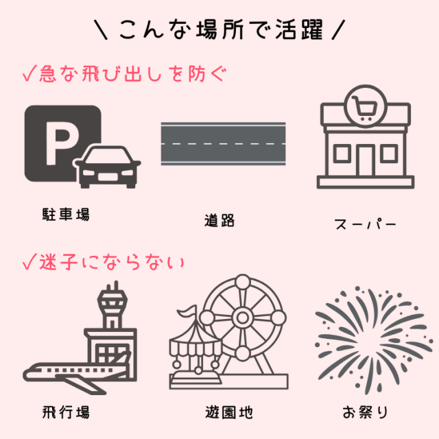 ハーネス付きで迷子防止、飛び出しを未然に防いで安全に移動する!