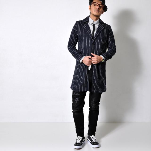ストライプ柄がシャープな印象を漂わせ、大人コーデと相性抜群のチェスターコート。