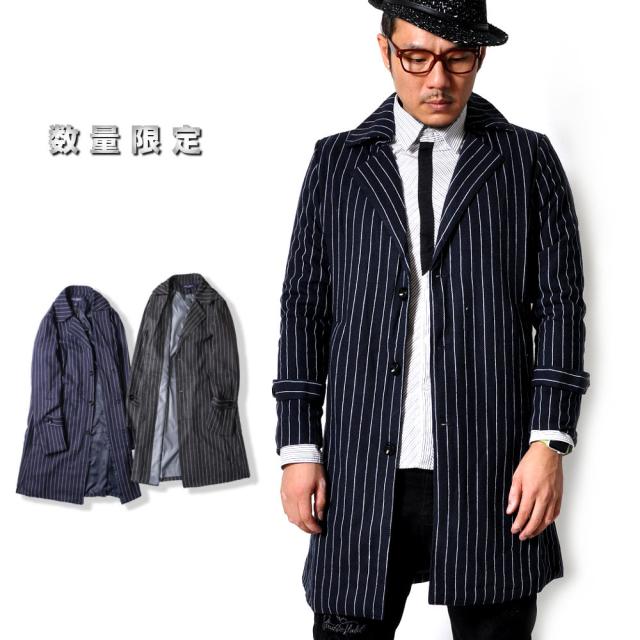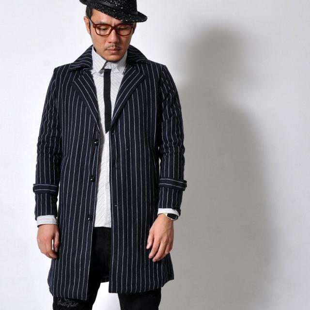 期間限定 SALE ストライプ チェスターコート メンズ トップス アウター #T739c1 M便 BL