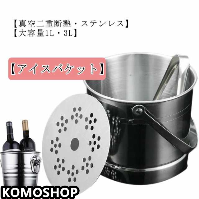アイスバケット ステンレス鋼 シャンパンクーラー アイスペール 氷バケツ 2L 1L ワインクーラー 保冷 真空断熱 ワイン 真空二重 溶けにくい 3L 氷入れ ハンドル 酒 クーラー ポータブル ハンドル付き 業務用 おしゃれ 大容量 氷 保存容器
