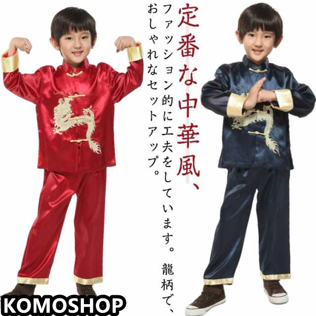 ジュニア 男の子 漢服 唐装 中華服 上下セット キッズ 子供 チャイナ服 長袖 龍柄 唐装漢服 龍柄 可愛い コスプレ衣装 チャイナブラウス ハロウィン セット 学園祭 イベント 団体お揃い ステージ衣装 合唱 演奏 中国風 舞台衣装