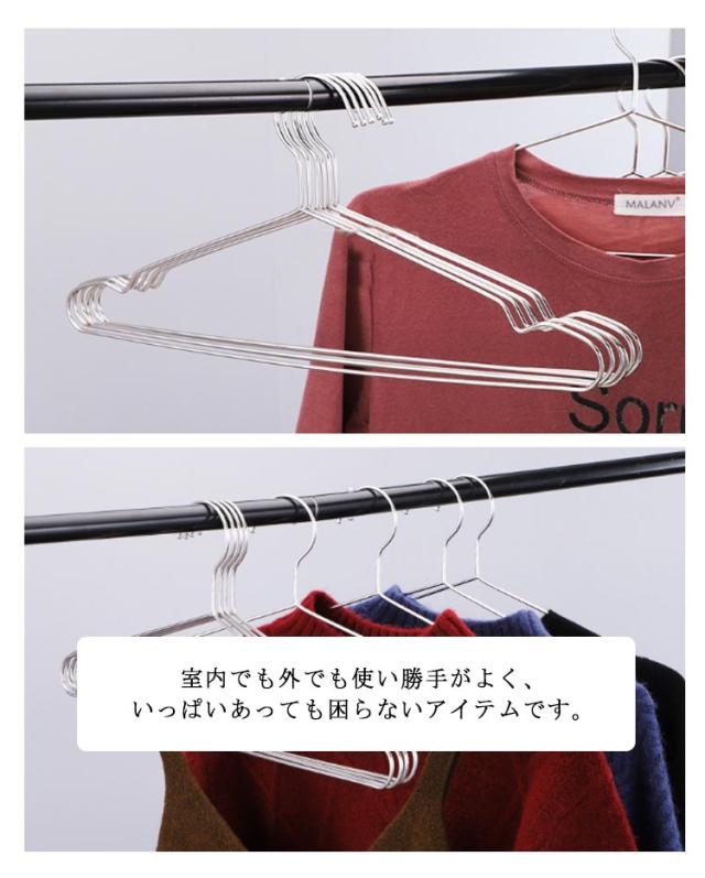 | 【ステンレスハンガー】【50本セット】【32cm 40cm 42cm 45cm】【頑丈・スリム・錆びない】 高耐久のステンレスハンガーを50本まとめて! ずっと使える!錆びない・曲がらない・使いやすいハンガーです。 スリムですが、耐荷重の能力が抜群!冬の重い服を掛けても変形しません。 クローゼットの中で使用したら、木製ハンガーより約50%の空間を節約できます。 室内でも外でも使い勝手がよく、いっぱいあっても困らないアイテムです。 人間工学に基づいて、型崩れにくい曲線を設計しました。 凹み部分のデザインは、滑り落ちる事を防ぎ、すごく良い使用感です。 頑丈なをステンレス使用して錆びない、劣化しにくいです。流線型デザインで衣類の型崩れやじわも防ぎます。 | |