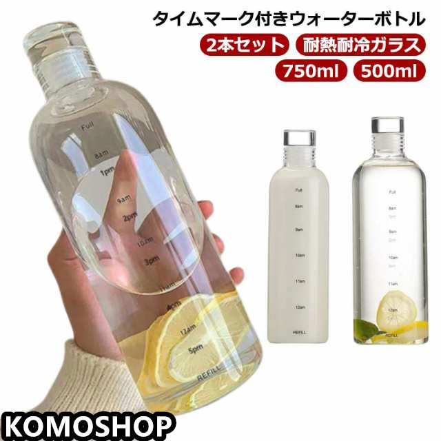2本セット ウォーターボトル 500ml 750ml ガラスボトル 耐熱ガラス クリアボトル 目盛り 直飲み スリム ガラス 水筒 ボトル 大容量 マイボトル クリア 透明 洗いやすい おしゃれ 北欧 レディース メンズ ドリンク コーヒー 【送料無料】