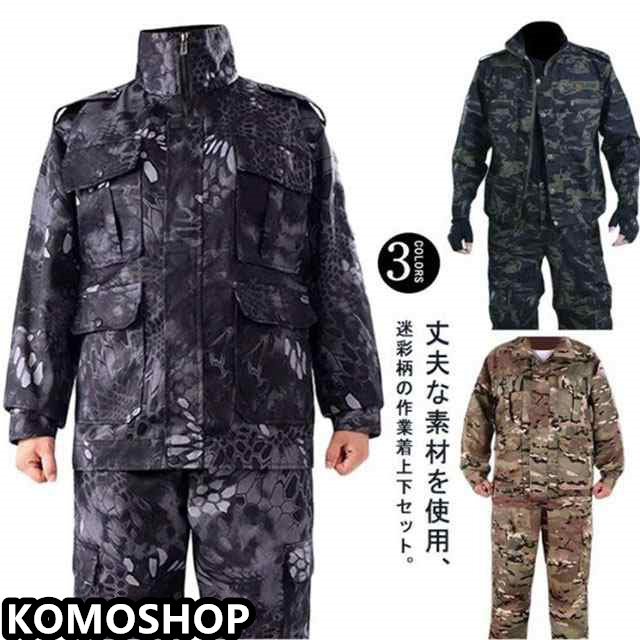 作業服 メンズ 上下セット 作業着 カモフラージュ柄 ジャケット ロングパンツ ミリタリー カーゴパンツ 制電 ワーク 作業着 耐摩耗 カジュアル お仕事 汚れ防止 アウトドア