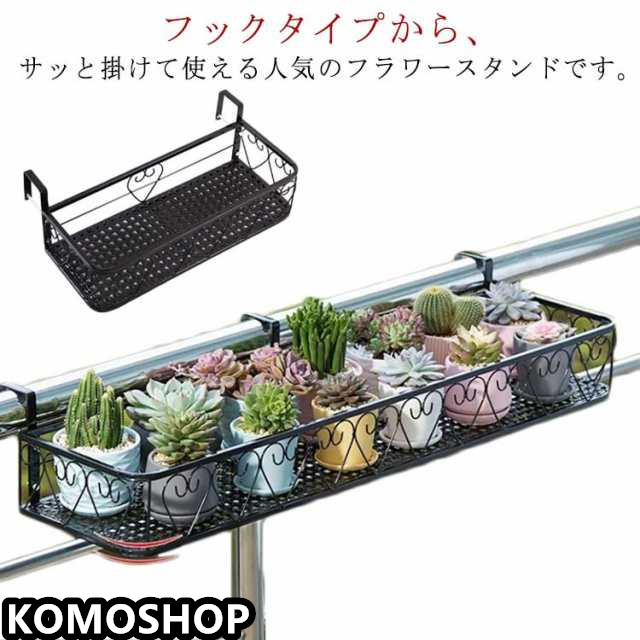 | フックタイプから、サッと掛けて使える人気のフラワースタンドです。 丈夫で耐荷重性に優れた鉄製。たくさんの植木鉢を置いても安定感があり、しっかり支えてくれます。 テラス手すり・階段手すり・柵に簡単に吊るすことができます。 また、家庭用品収納ラック、物干しラックとしても使用可能です。 室内はもちろんサビにくいため屋外での使用もおすすめです。 喫茶店・書斎・花屋・オフィス・庭などの空間に華やかな雰囲気を醸し出せます。 | |