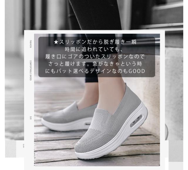 | 約5cm厚底、履くだけでこっそり美脚をゲットできちゃいます♪ ★スリッポンだから脱ぎ履き一瞬 時間に追われていても、履き口にゴアのついたスリッポンなのでさっと履けます。急がなきゃという時にもパット選べるデザインなのもGOOD ★一年中使える フライニット素材なので春夏はもちろん秋冬にも♪ オールシーズン履く事ができます! ★滑り止め 滑りにくいPUのアウトソールがやわらかくて疲れにくいから、たくさん歩けて長時間でも安心。 ★幅広く活躍厚底スリッポン サッと履けてどんなコーデにもマッチするので、普段使いからお出かけやご旅行にもヘビロテ間違いなしのアイテムです。ナースシューズとしてもおすすめ。 | |