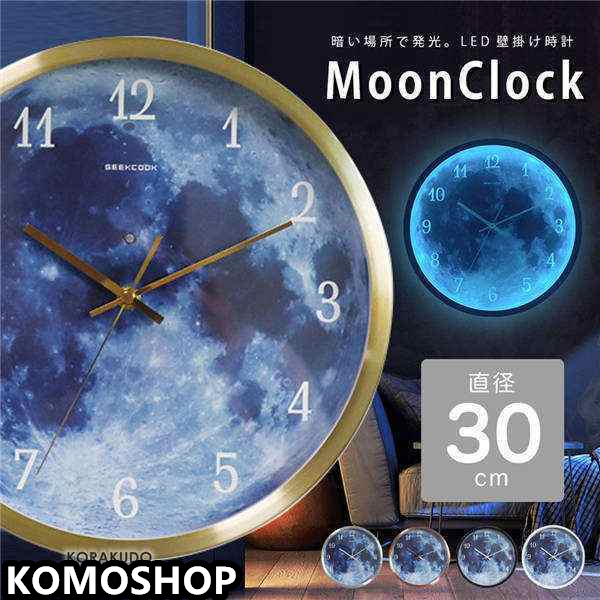 壁掛け時計 直径30cm LED アルミフレーム 光る 月面 銅針 掛け時計 ウォールクロック コードレス 点灯 発行 宇宙 夜空 幻想的 神秘的 映える 個性的 おしゃれ インテリア