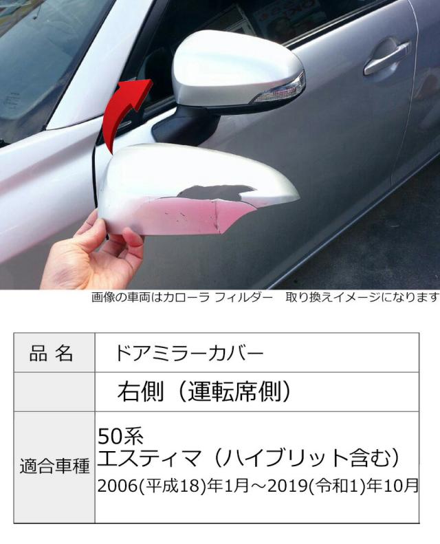 ドアミラーカバー右 トヨタ エスティマ 50系 右側(運転席側)カラーをお選びください 傷・割れ・はげた時にDIYで交換にチャレンジ TER50