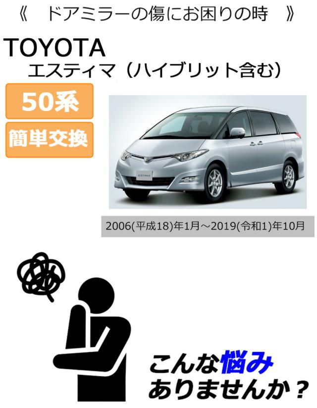 ドアミラーカバー右 トヨタ エスティマ 50系 右側(運転席側)カラーをお選びください 傷・割れ・はげた時にDIYで交換にチャレンジ TER50