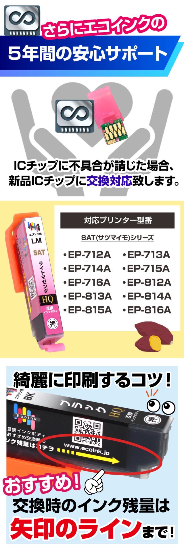 【永久ICチップ付き】SAT-6CL 6色パック スターターセット+2交換用インクボディセット サツマイモ 互換インクカートリッジ エプソン プリンター対応 増量版 互換インク epson さつまいも EP-712A EP-713A EP-714A EP-715A EP-716A