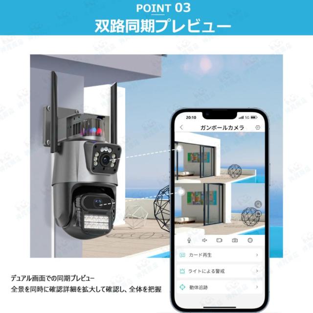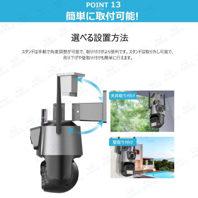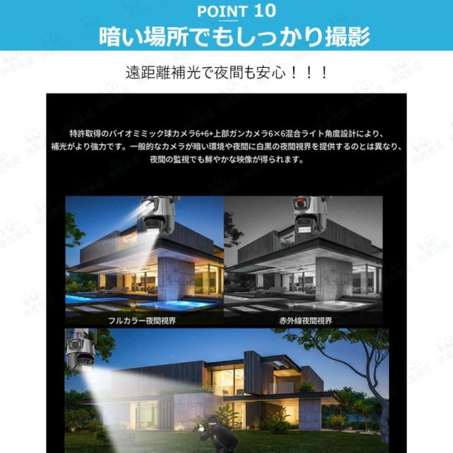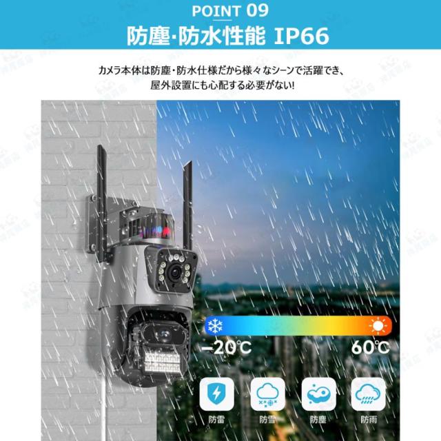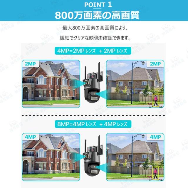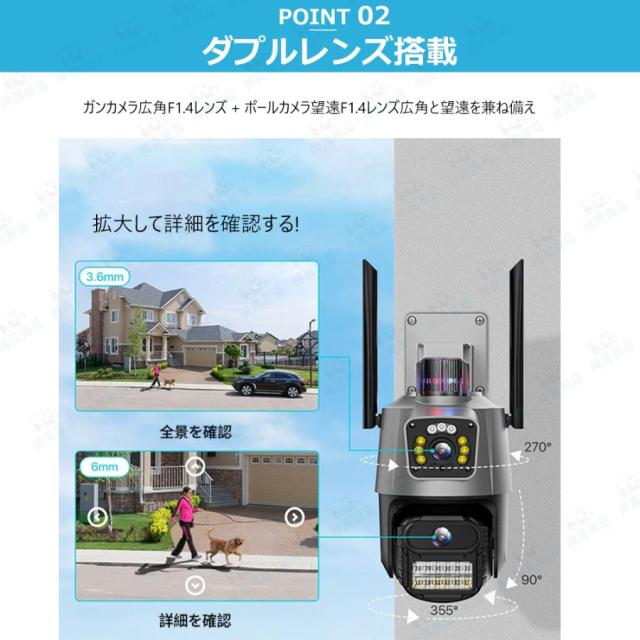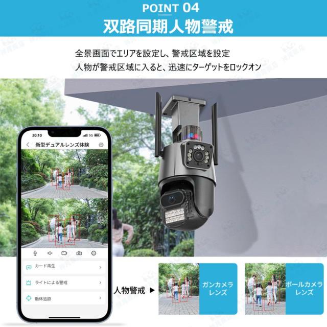 防犯カメラ 屋外 家庭用 800万画素 屋外カメラ 人体検知 自動追跡 パンチルト デュアル IP66 工事不要 遠隔監視 防水防塵 監視カメラ 暗視 高画質 事務所