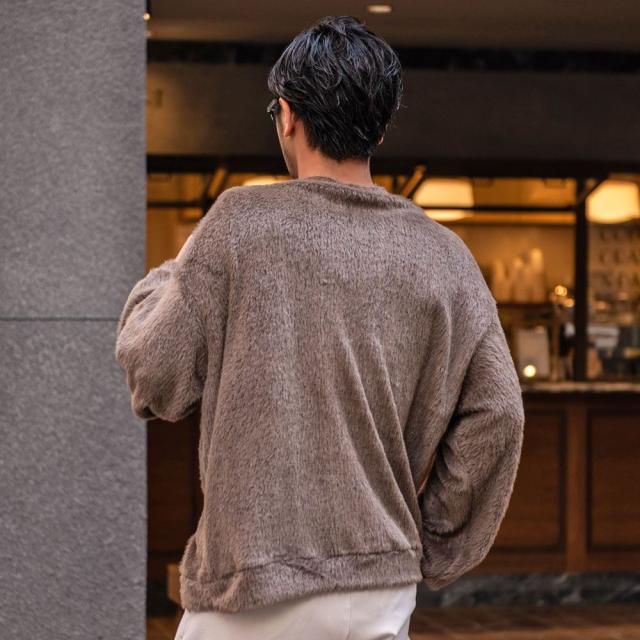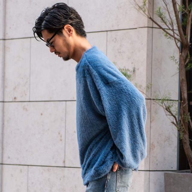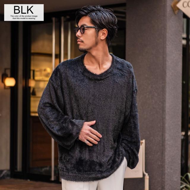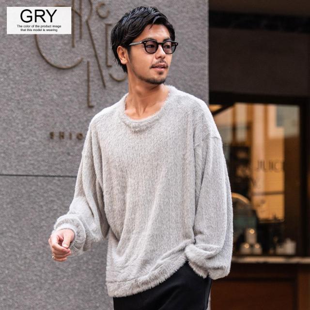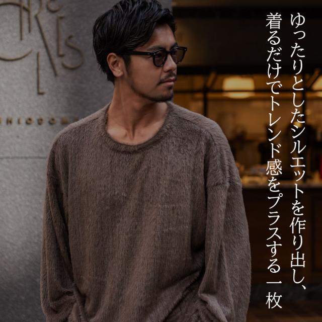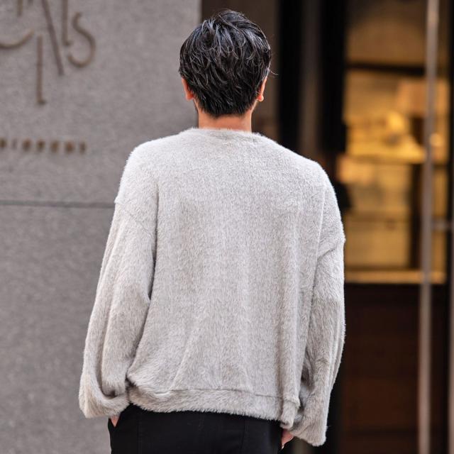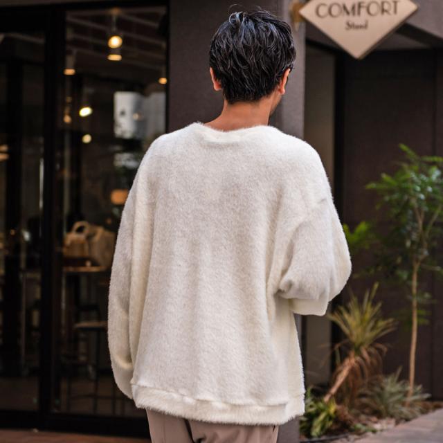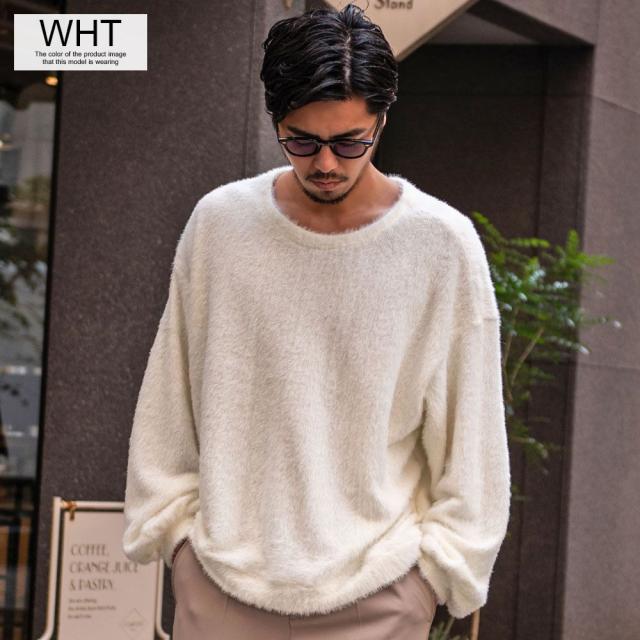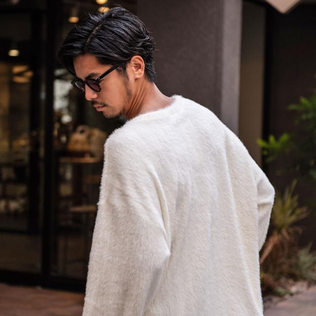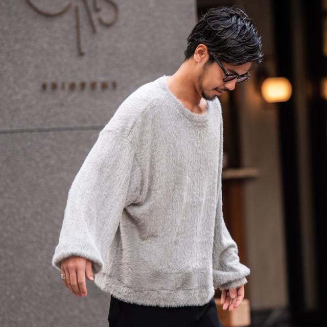 ふんわりとしたシャギー素材を使用したビッグシルエットの長袖ニットソー。