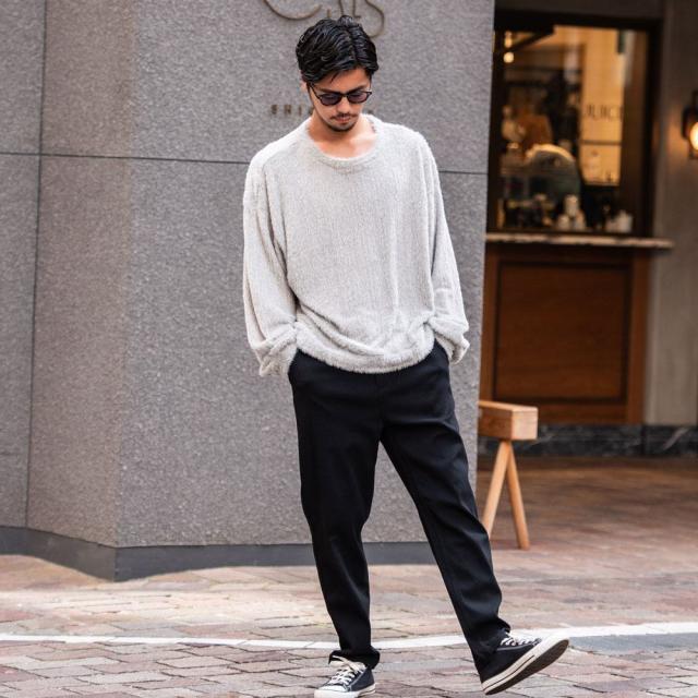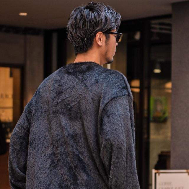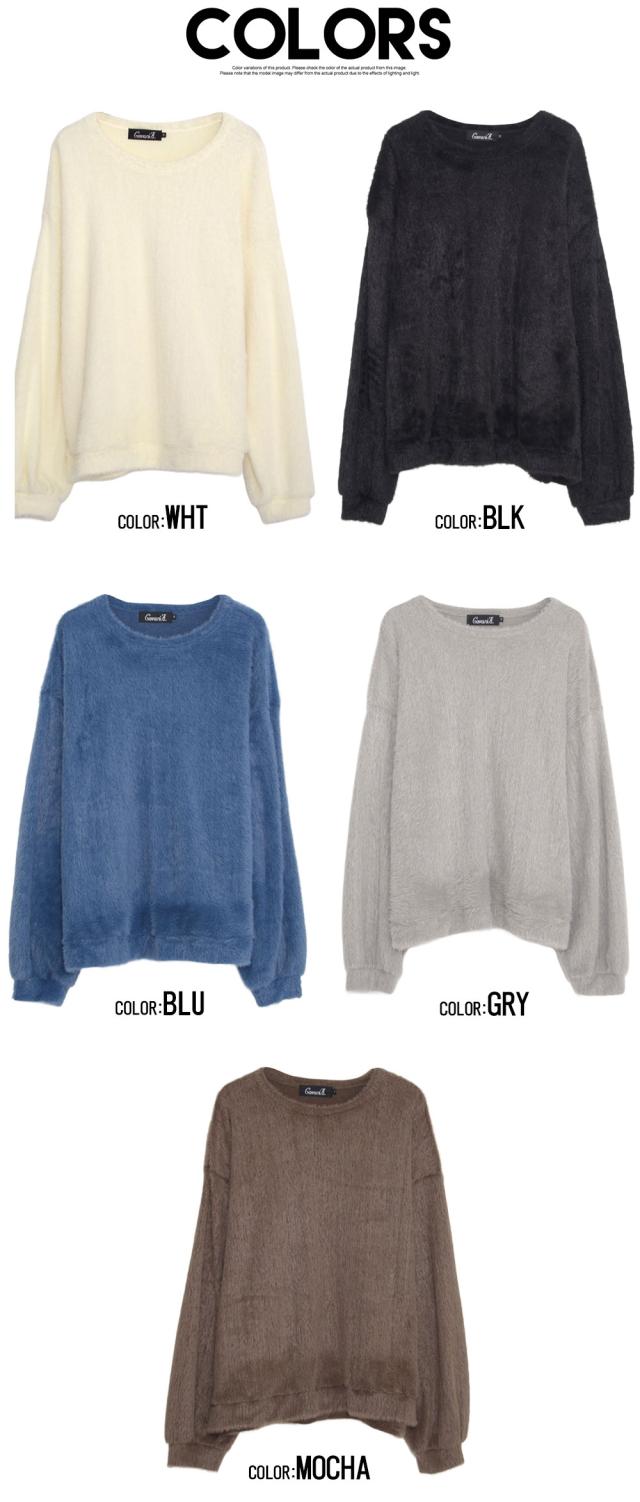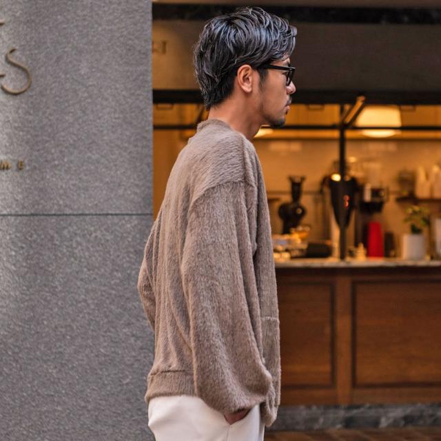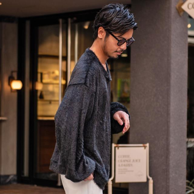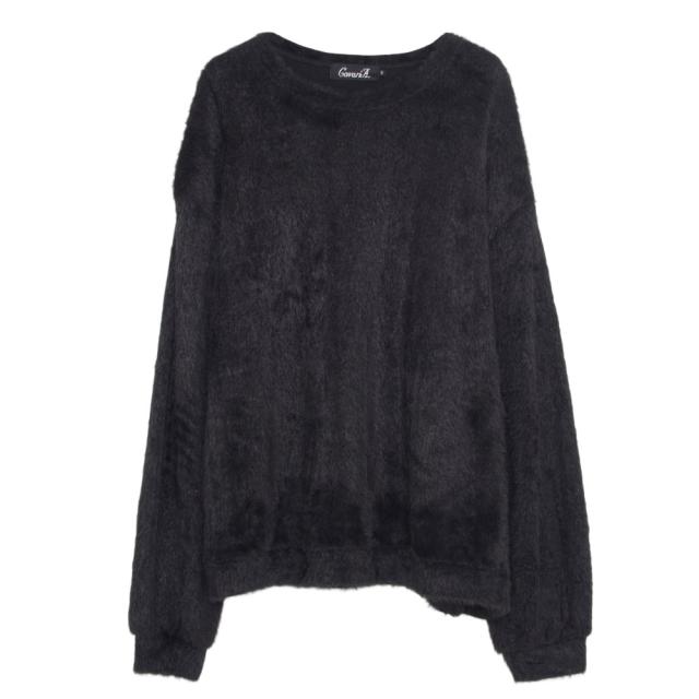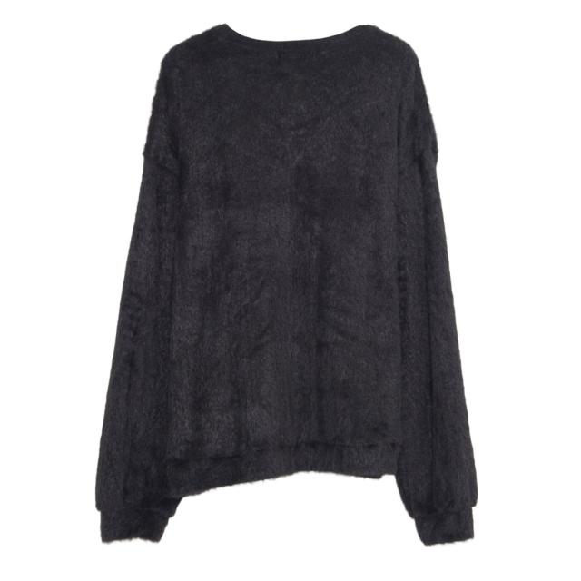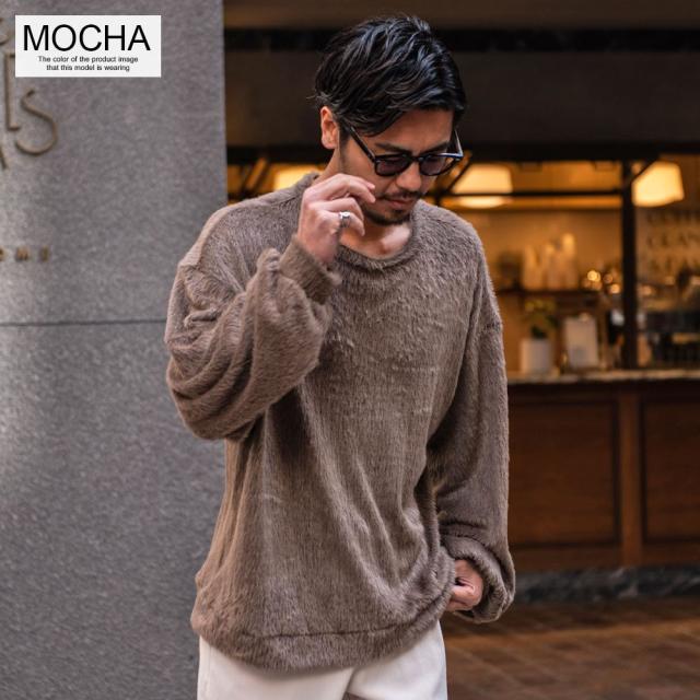 ふんわりとしたシャギー素材を使用したビッグシルエットの長袖ニットソー。