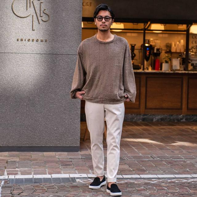 シンプルで落ち着いた色合いなので、デニムやチノパンツ、スラックス、ショートパンツなど、どんなボトムスとも相性抜群。