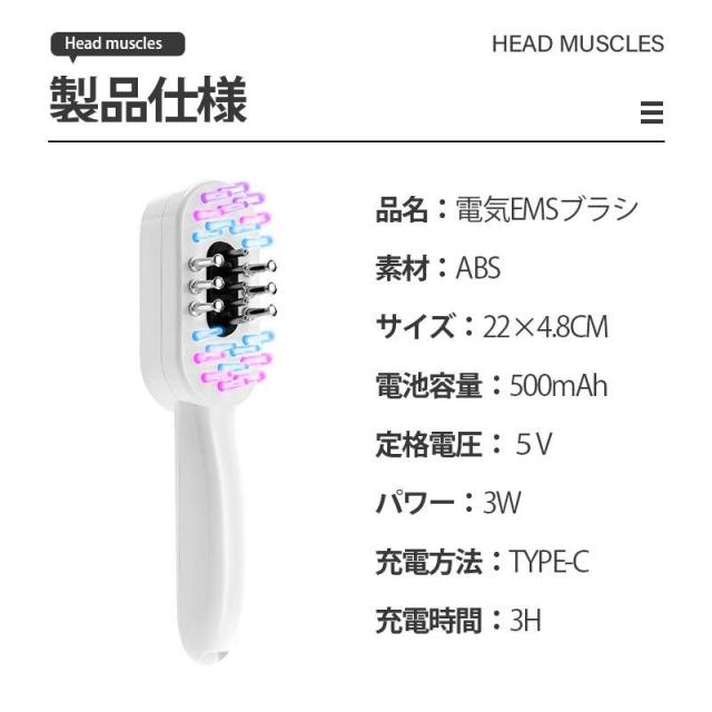 電気ブラシ 電動頭皮ブラシ 美顔器 ems 頭皮ケア ブラシ 頭筋ブラシ EMSブラシ 美容 頭皮ケア フェイスケア 微電流 LED 表情筋 充電式 母の日