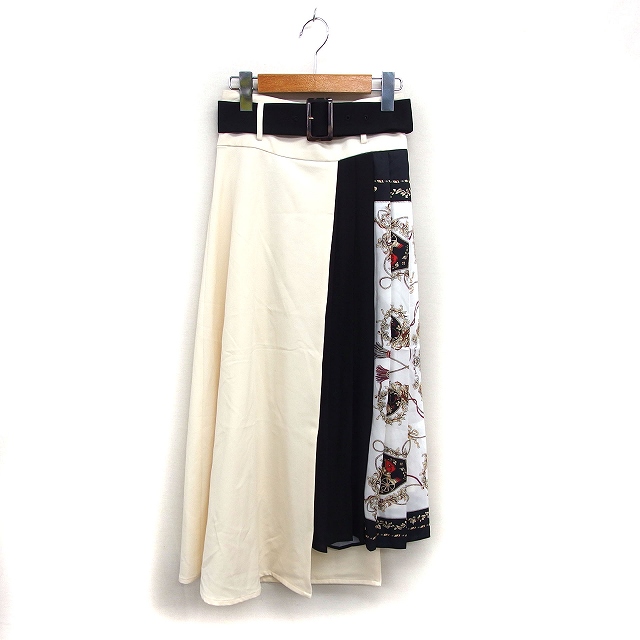 【中古】リゼクシー RESEXXY フレア ロング スカート マキシ丈 バンダナ柄 プリーツ ベルト 切替 F オフホワイト /NT27 レディース