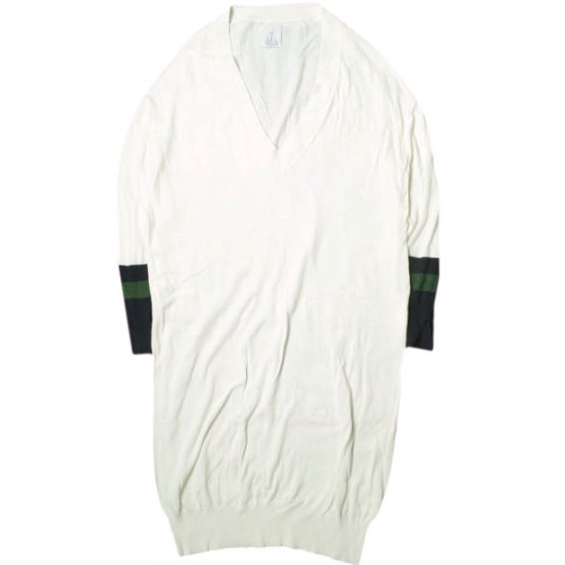 OKIRAKU オキラク long knit Vネックニットワンピース ah20201 Free Off White ライン 膝丈 トップス