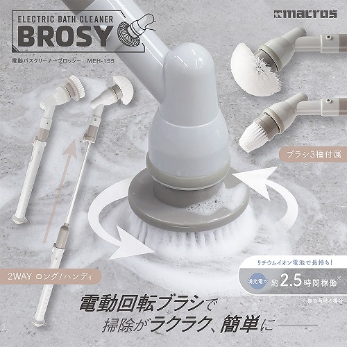 電動バスクリーナー ブロッシー 風呂掃除 バスタブ 風呂 掃除 回転ブラシ マクロス macros MEH-155