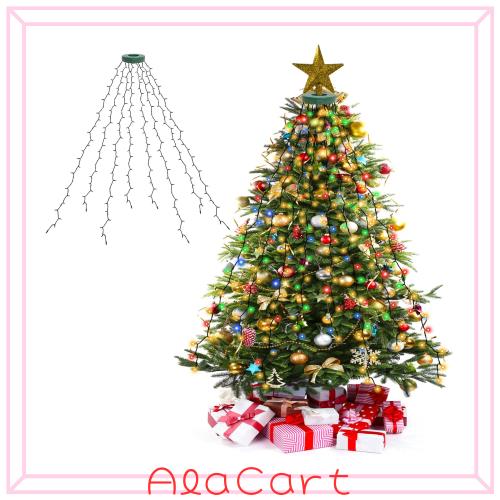 ??【クリスマスツリー 飾りライト】クリスマスツリー用のおしゃれなLEDイルミネーションライトは高品質のLED電球を使用しているため、 ストレートライトの輝度は従来品より明るいです。一粒一粒が明るくてどの方向から見ても綺麗です。長さ2mの垂れ下がるワイヤライトが8本で、合計280球のLEDストリングライトは120cm/150cm/180cm/210cm程度の家庭用クリスマスツリーに取り付けるとボリュームのある光を楽しむことができるし、オーナメントやリボンなどのデコレーションと組み合わせて綺麗に飾れます。クリスマス以外でもご自宅のオブジェや家具などにも装飾が可能です。アレンジ一つで普段とは違う光の世界が堪能できます。
