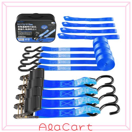 AWELCRAFT ラチェット式タイダウンベルト 4.5Mx4本 GS認証取得済み 破断荷重450KG 荷締めベルト 幅25mm ラッシングベルト 荷締機 固定