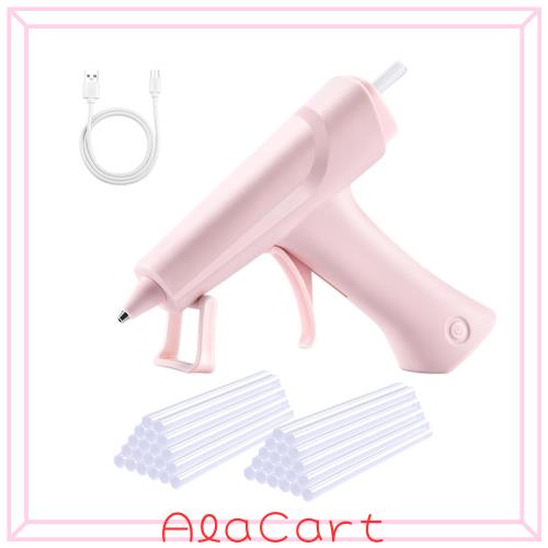Tigwiss コードレス グルーガン キット 7mm*150mm グルースティック 40本付き USB 充電式 ホットボンド コードレスグルーガン 小型 軽量 ぐるーがん DIY 手芸 木工 補修 粘着工具 ピンク