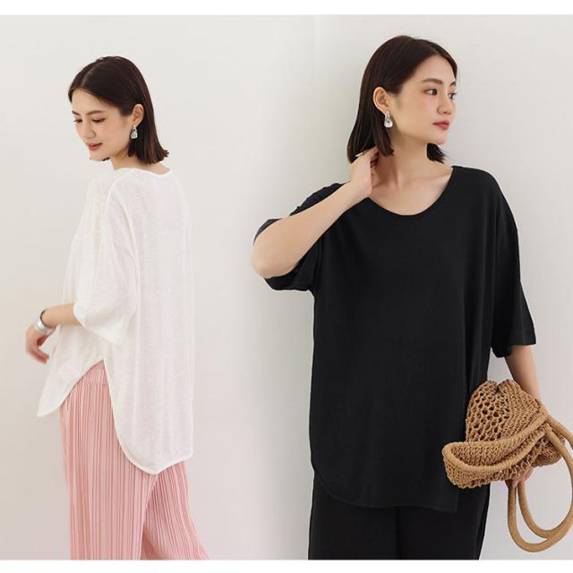 ロンT レイヤード シアー トップス Tシャツ シアートップス Uネック 透け感 半袖 レディース 重ね着 おしゃれ かわいい 大人可愛い きれいめ カジュアル シンプル 無地 ゆったり 伸縮性 薄手 春 夏 秋 インナー フェミニン 上品 トレンド
