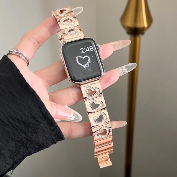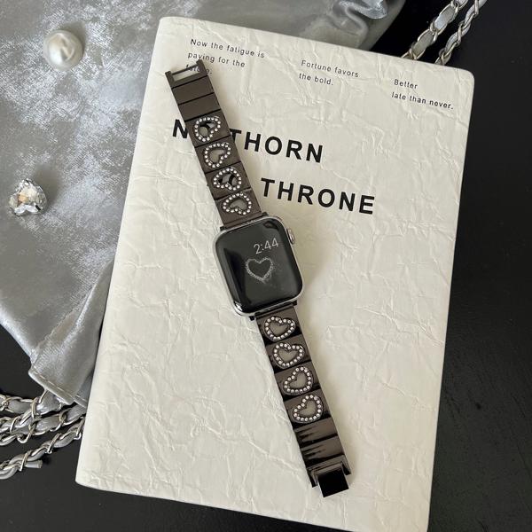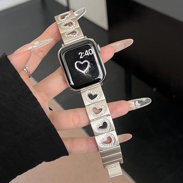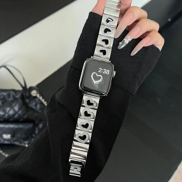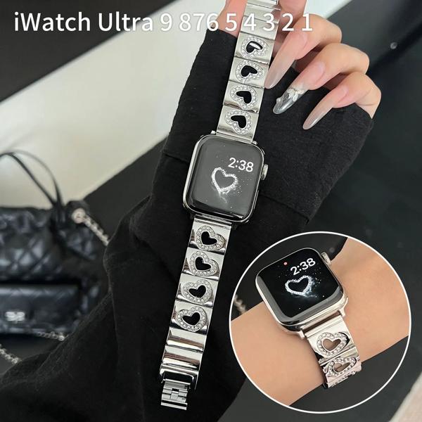 Apple Watch用ダイヤモンドハートストラップ 高級メタルストラップ iwatch用 45mm 40mm 38mm 49mm ウルトラ44mm 789se654