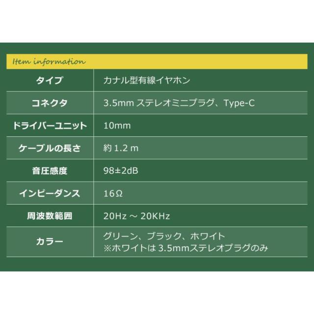 商品について【カナル型有線イヤホン(3.5mmイヤホンジャック、Type-C)】