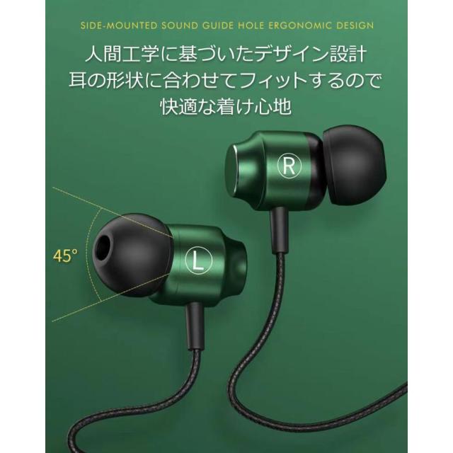 有線タイプのイヤホン。カナル型なので外れにくく、高い密閉性で音漏れもしにくい有線イヤホンです。もちろん、マイク付きで通話も可能なので、テレワークやゲーミングにもオススメの有線イヤホンです。