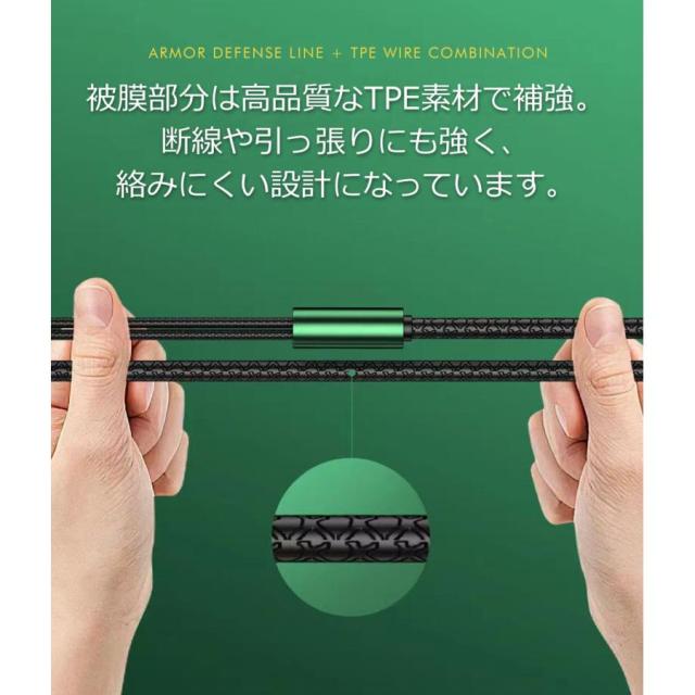 ◎被膜部分は高品質なTPE素材で補強。断線や引っ張りにも強く絡みにくい設計