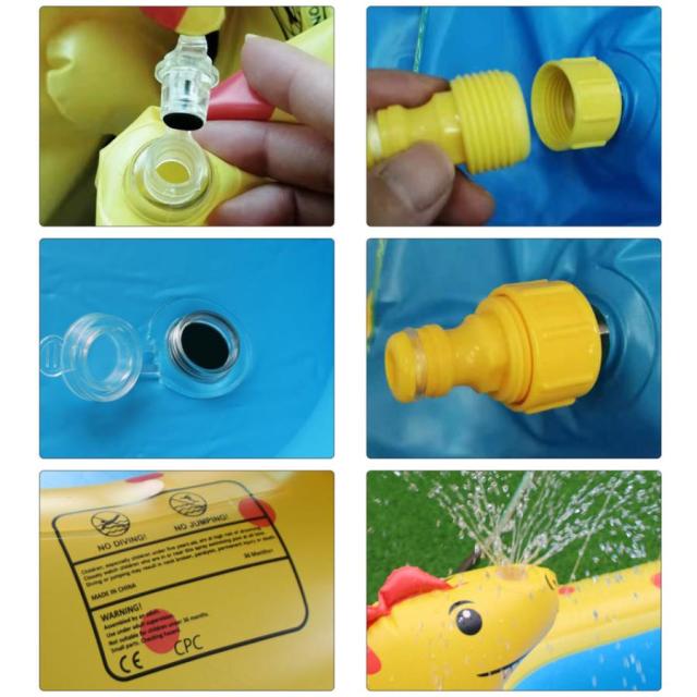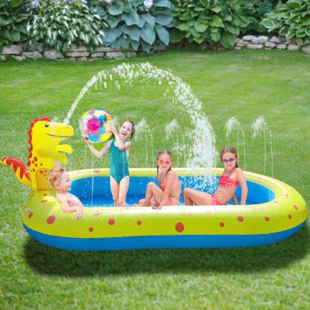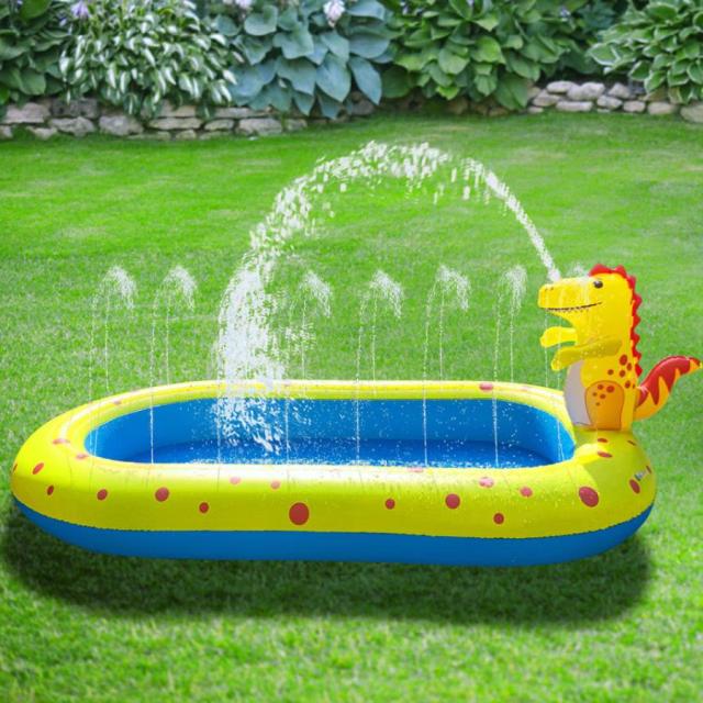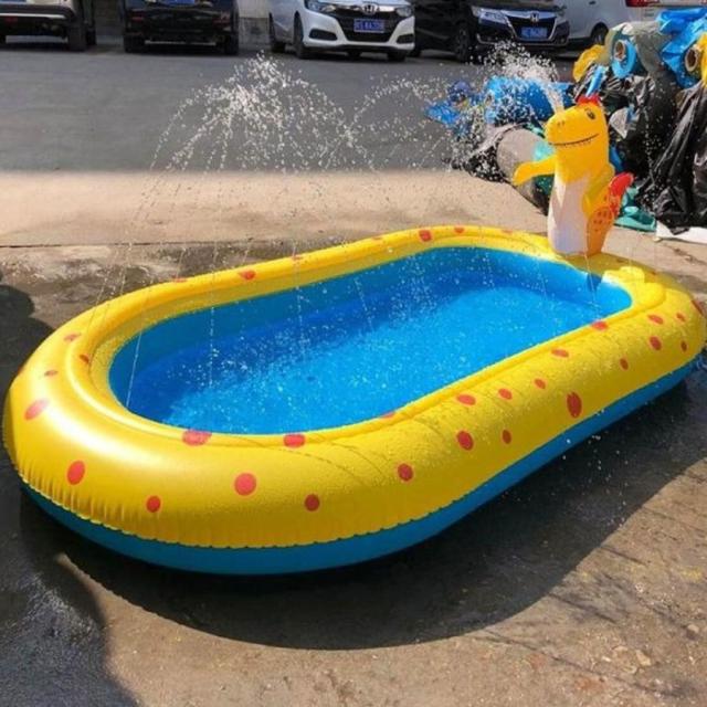 ■恐竜の噴水シャワー付きビニールビールホースをつないで水を出すだけで、恐竜から噴水シャワーが出てくるビニールプール。プールのフチからも小さな噴水が出るので、とても楽しく水遊びできるビニールプールです。