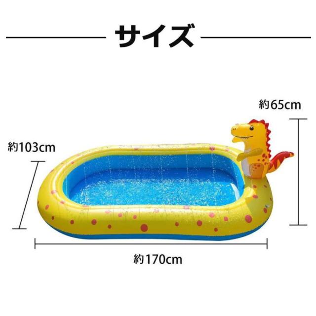 ホースをつないで水を出すだけで、恐竜から噴水シャワーが出てくるビニールプール。プールのフチからも小さな噴水が出るので、とても楽しく水遊びできるビニールプールです。
