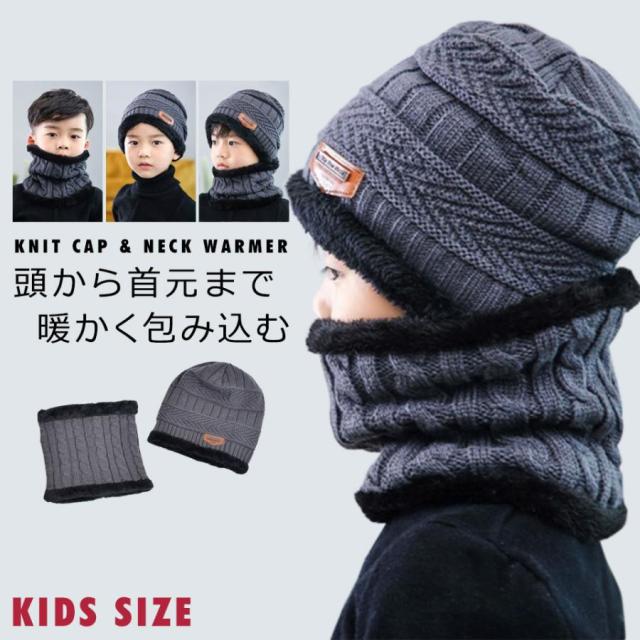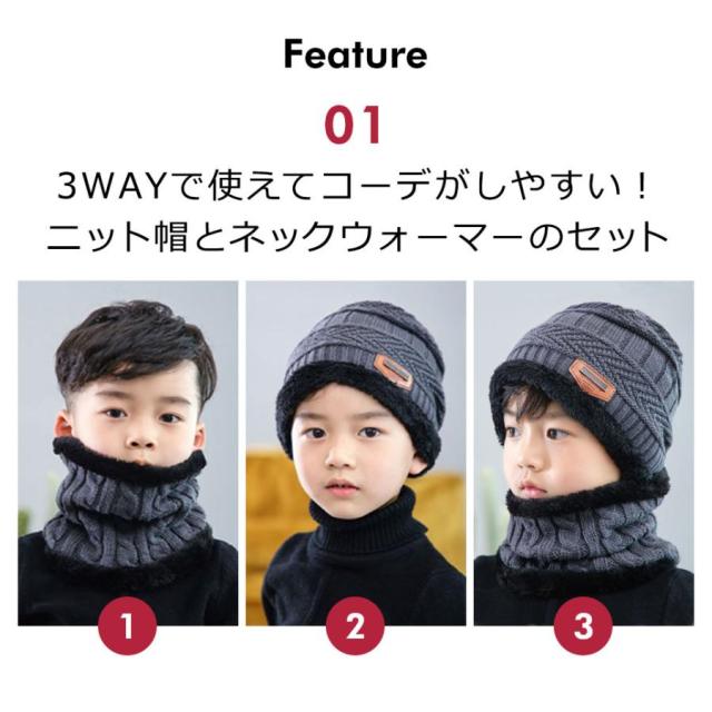 【頭から首元まで暖かく包み込むキッズニット帽&ネックウォーマー】