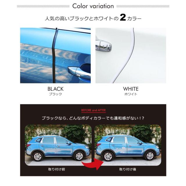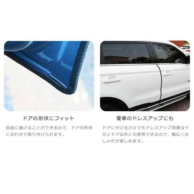 ドアモールは、ドアに付けるだけでもドレスアップ効果は十分。ドア以外のも使用できるので、幅広くオシャレが楽しめます。
