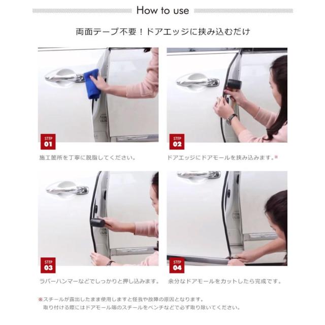 商品について【両面テープ不要でドアエッジに挟み込むだけの車用ドアモール】