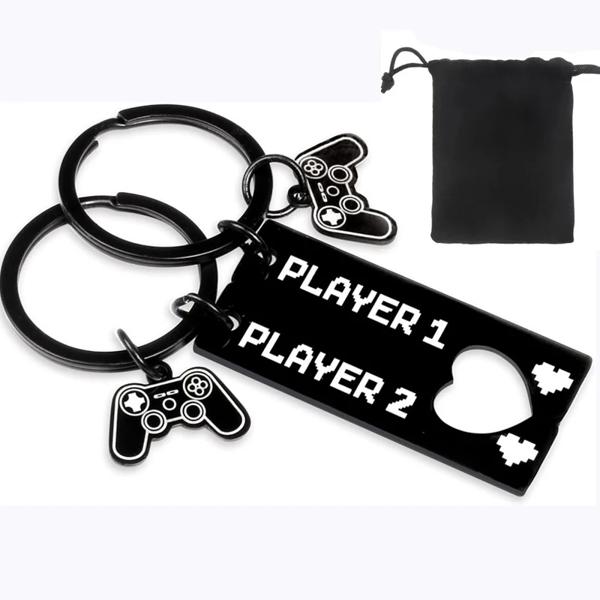 かわいいゲーマーカップルキーチェーン 彼と彼女用 バレンタインデーギフト ボーイフレンド ガールフレンド プレーヤー1 プレーヤー2 マッチングキーチェーン