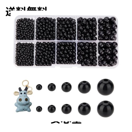 自由に選べる5サイズ:直径3mm/4mm/5mm/6mm/8mmの5サイズの黒いビーズがあるので、ご使用パーツにあうように、自由にお選びいただけます。