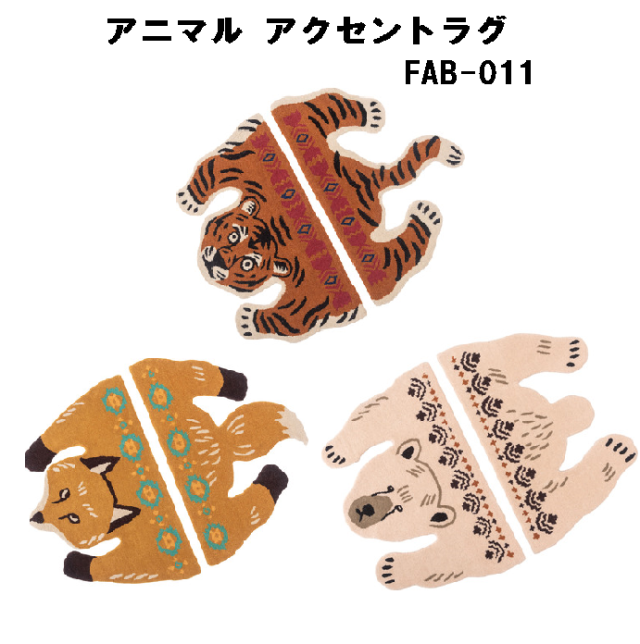 アニマルアクセントラグ ラグ アニマル柄 もこもこ 個性的 癒し セパレート 東谷 FAB-011 トラ キツネ クマ