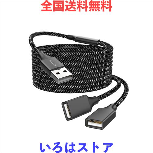 MOGOOD USB延長ケーブル USB分岐器 USB Aオス〜2メス延長ケーブル 耐久性のあるUSB分岐器ケーブルナイロン編み高速データ伝送とプリンタ、