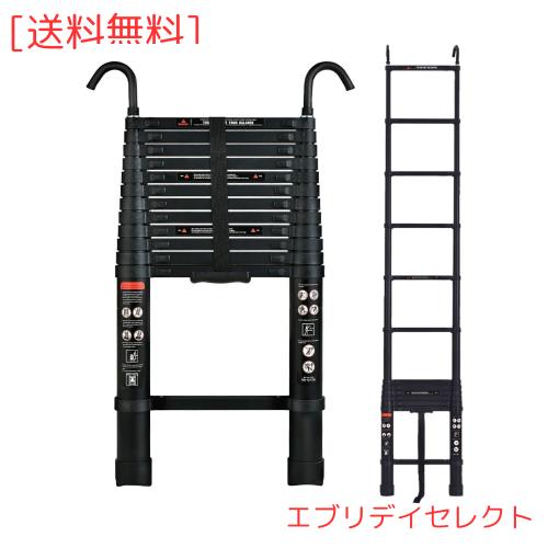 ◆商品名:DayPlus 伸縮はしご 最長3.8 m (12.5 ft) 折り畳み伸縮梯子 フック付き 多機能アルミはしご 持ち運びに便利 軽量 耐荷重150 kg 室内室外