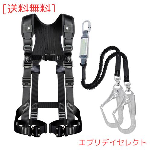 [UIANSP] フルハーネス安全帯 新規格 セット 墜落制止用器具 ランヤード一体型 落下防止全身保護キット、 全身反射 安全保護 デュアルハ