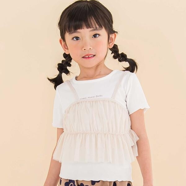 チュールキャミソール重ね着フライス半袖Tシャツセット(90~130cm)