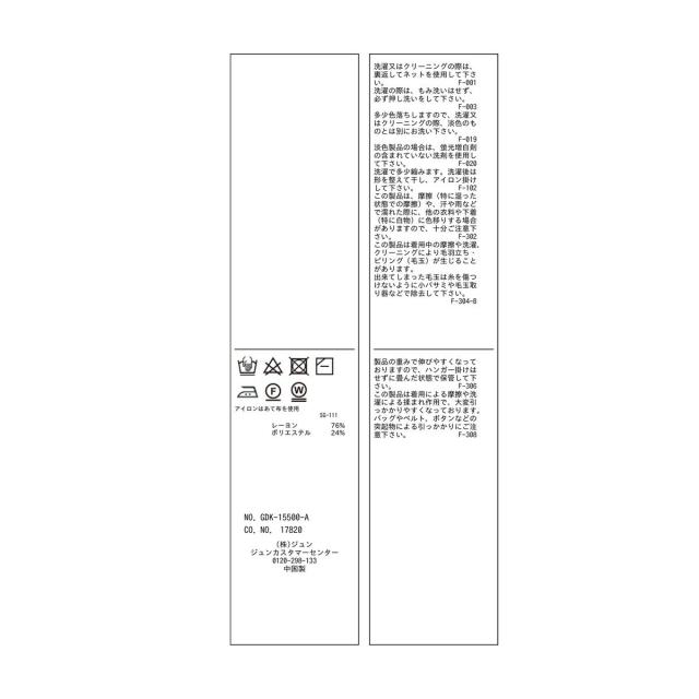 ■お手入:手洗い|漂白不可|タンブル乾燥不可|自然乾燥|アイロン仕上げ可|ドライ可|ウエットクリーニング可