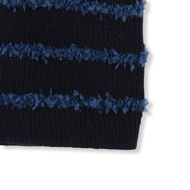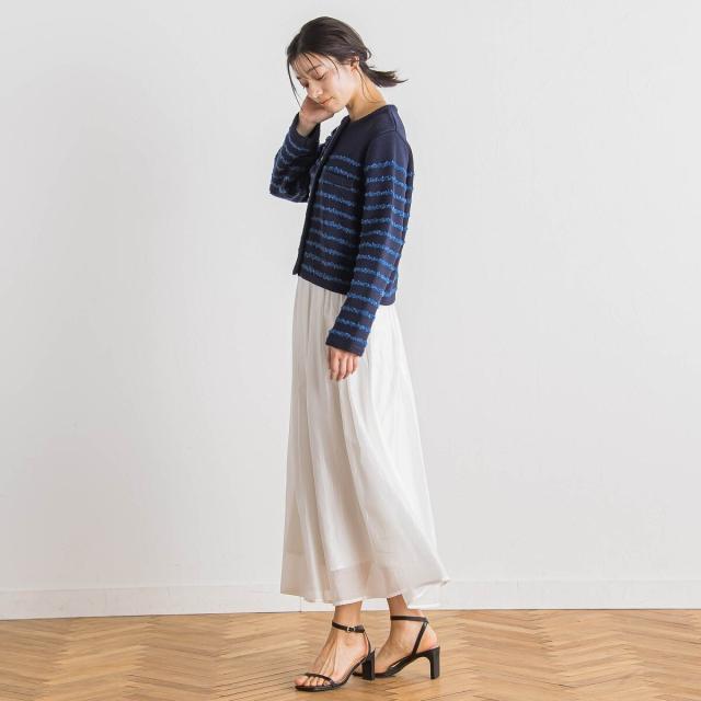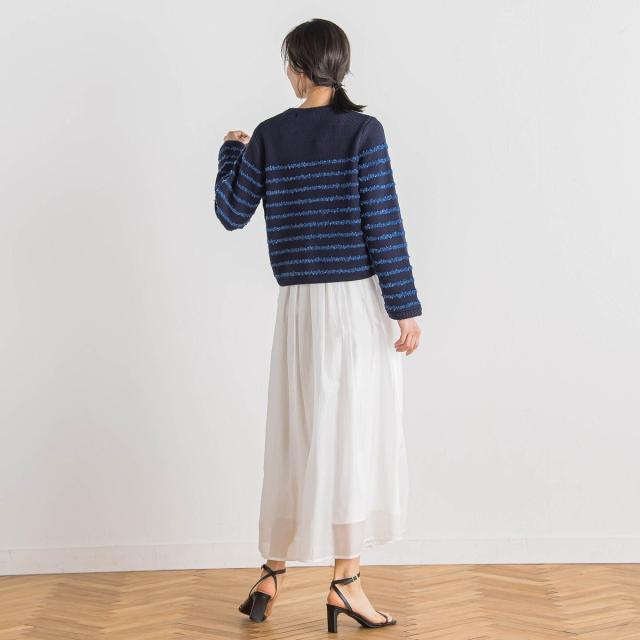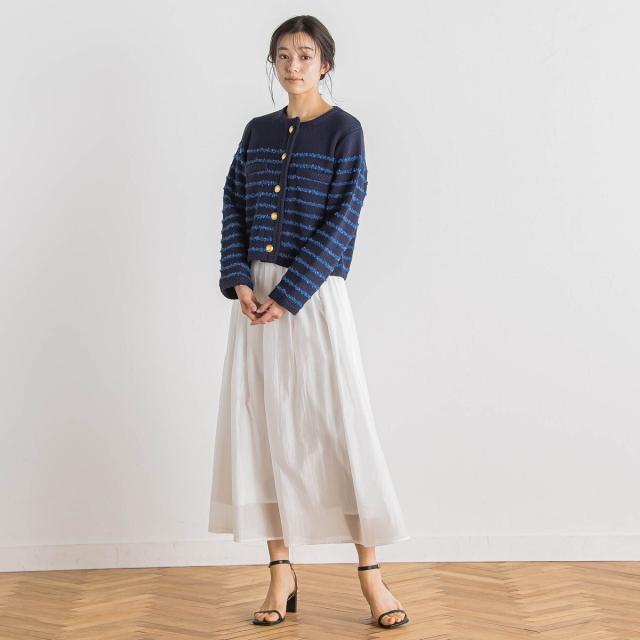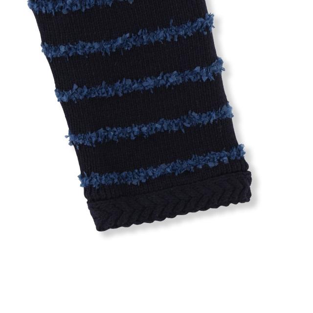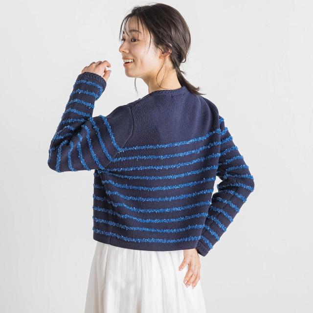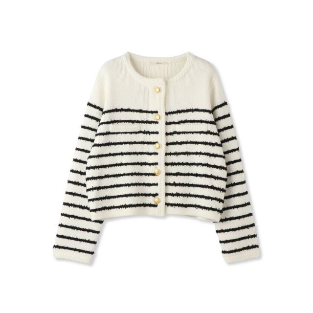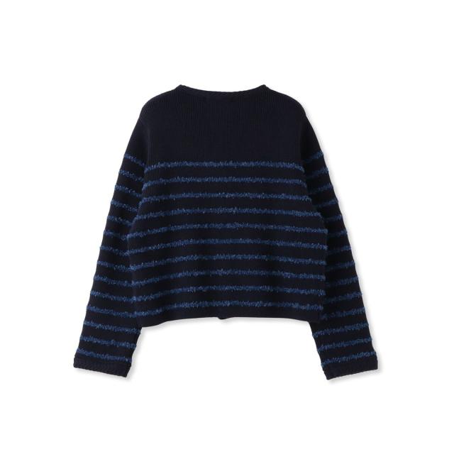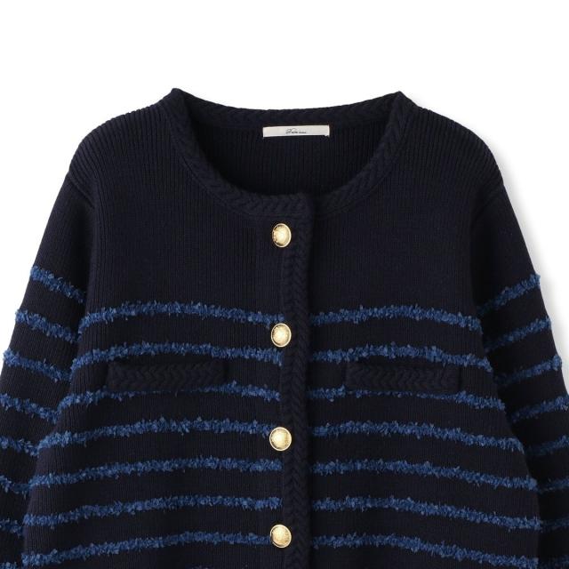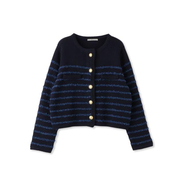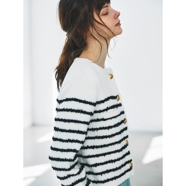 軽やかな毛足のあるタフライヤーンをボーダー柄にしたニットカーディガン。