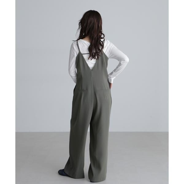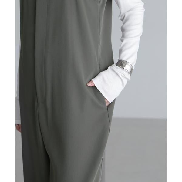 とろみと落ち感のある上品でキレイめな目面の合繊生地をしたサロペットです。ワイドレッグのベアトップ型で、エレガントさとカジュアルさを兼ね備えたデザイン。バックスタイルは深めのVネックにして抜け感をプラス。身幅はインナーを合わせた時にきつくならないサイズ感にしています。インにシンプルなカットソーやニット合わせで、大人シックなスタイルがおすすめです。肩紐はストラップで長さ調節可能。※モデルの着用画像の場合、光の当たり具合により、実際の色味と異なって見えることがございます。色味は、商品単体の画像をご参照ください。